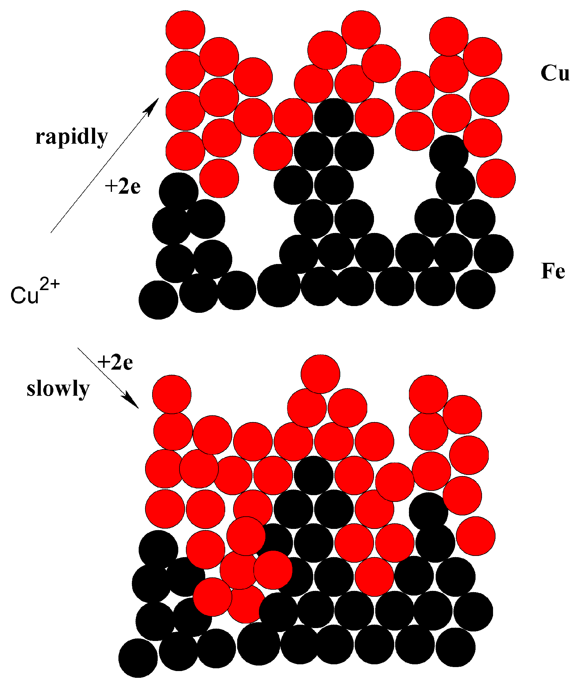 In our case, the low electrodeposition rate was provided due to a very low concentration of Cu2+ ions.