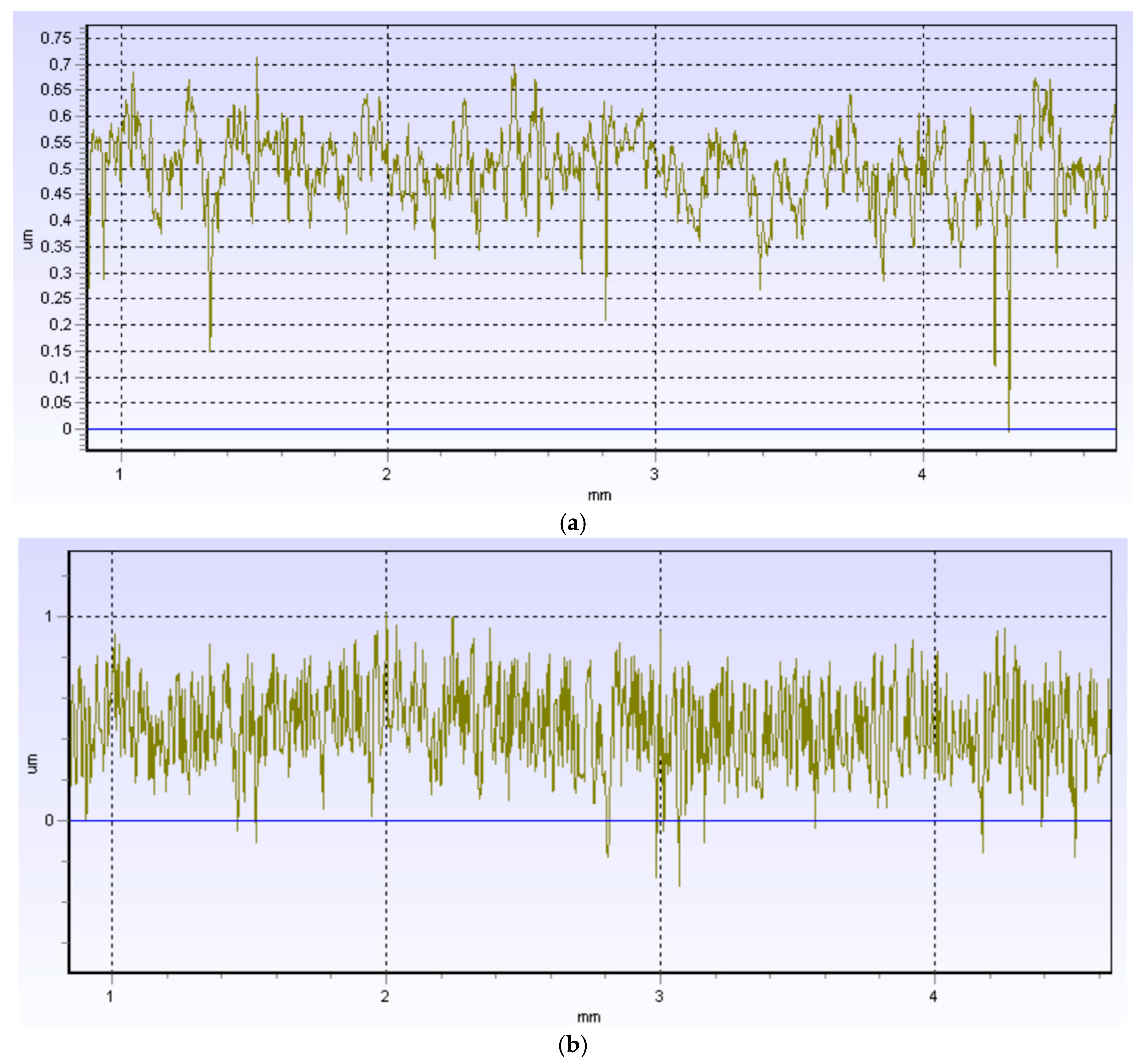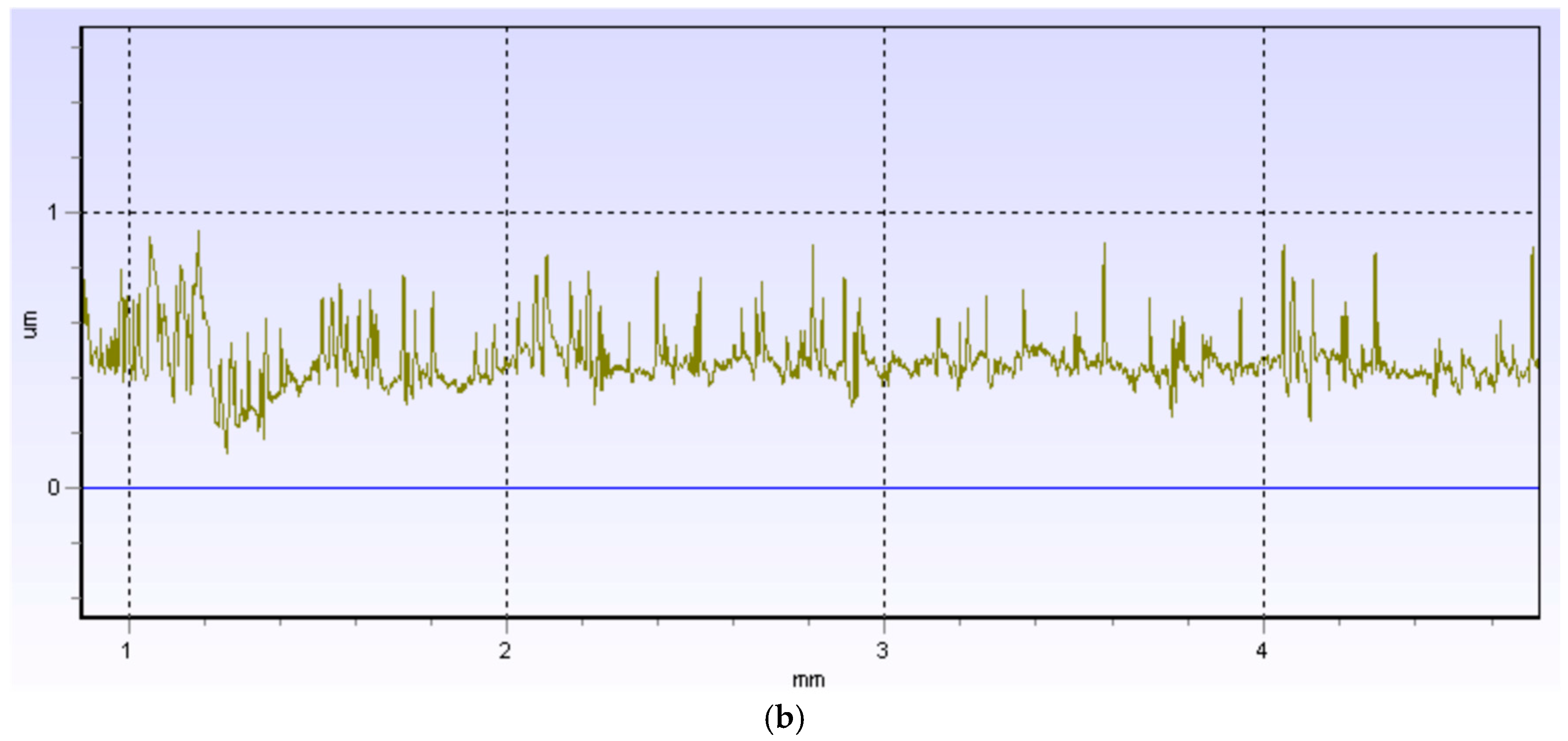 2.3. Study of the Surface Morphology of High-Carbon Steel and Copper Coating Using Profilographic Measurements