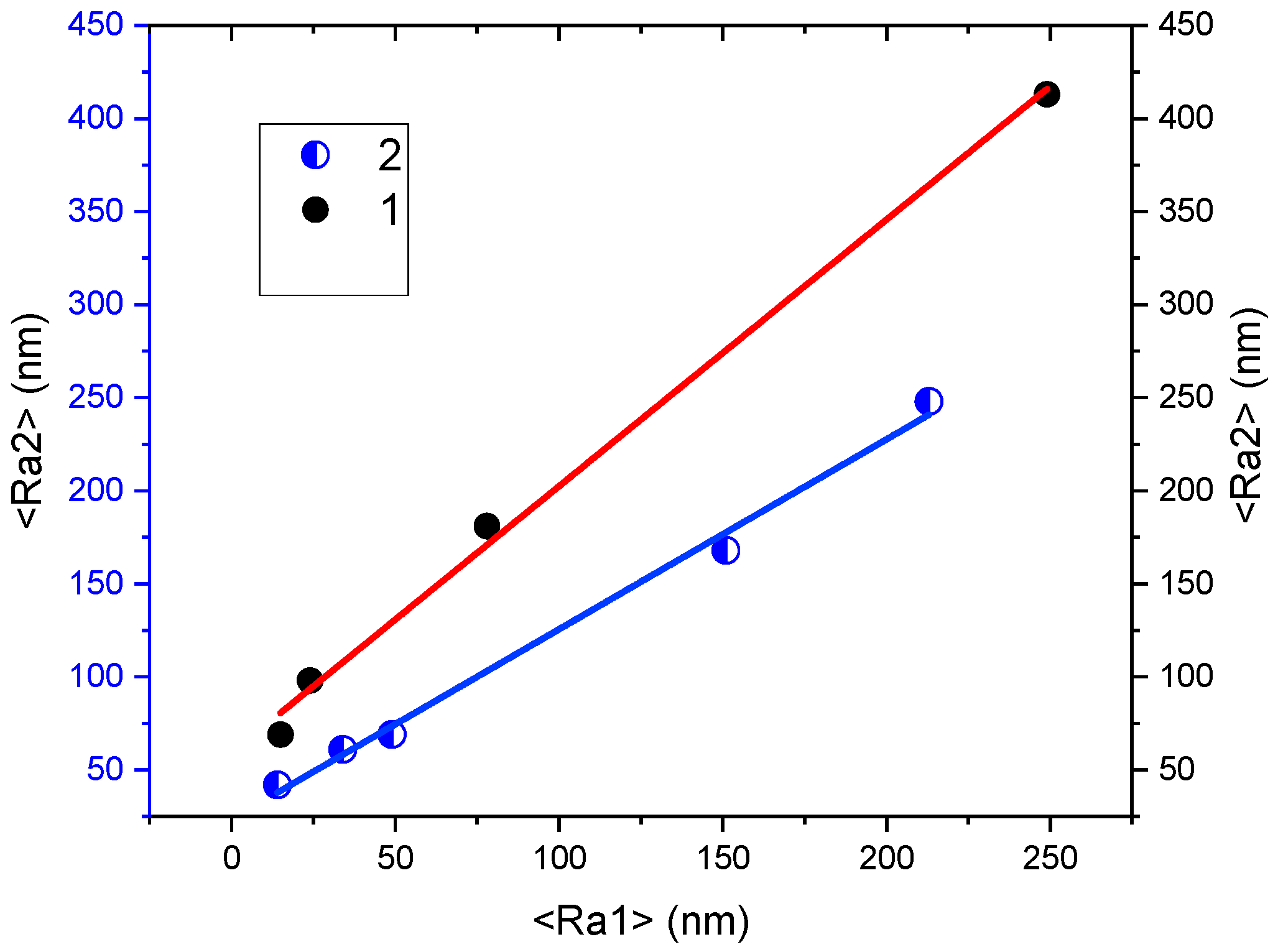 Despite some difference in the values of <Ra1> obtained using AFM and profilographic measurements, all the data presented in