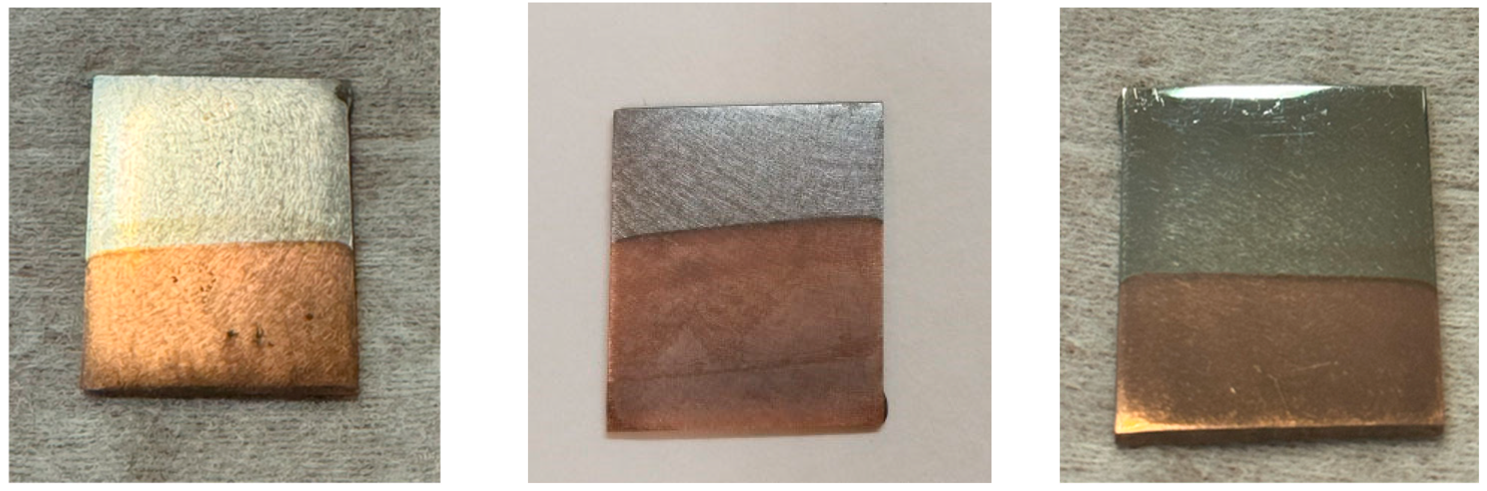 HCS samples with a size of 25 mm × 30 mm × 2 mm were applied as a cathode. The surface of HCS, which was to be coated with a layer of copper, was mechanically polished using #240, #400, #600, #1000, and #2000 sandpaper (Al