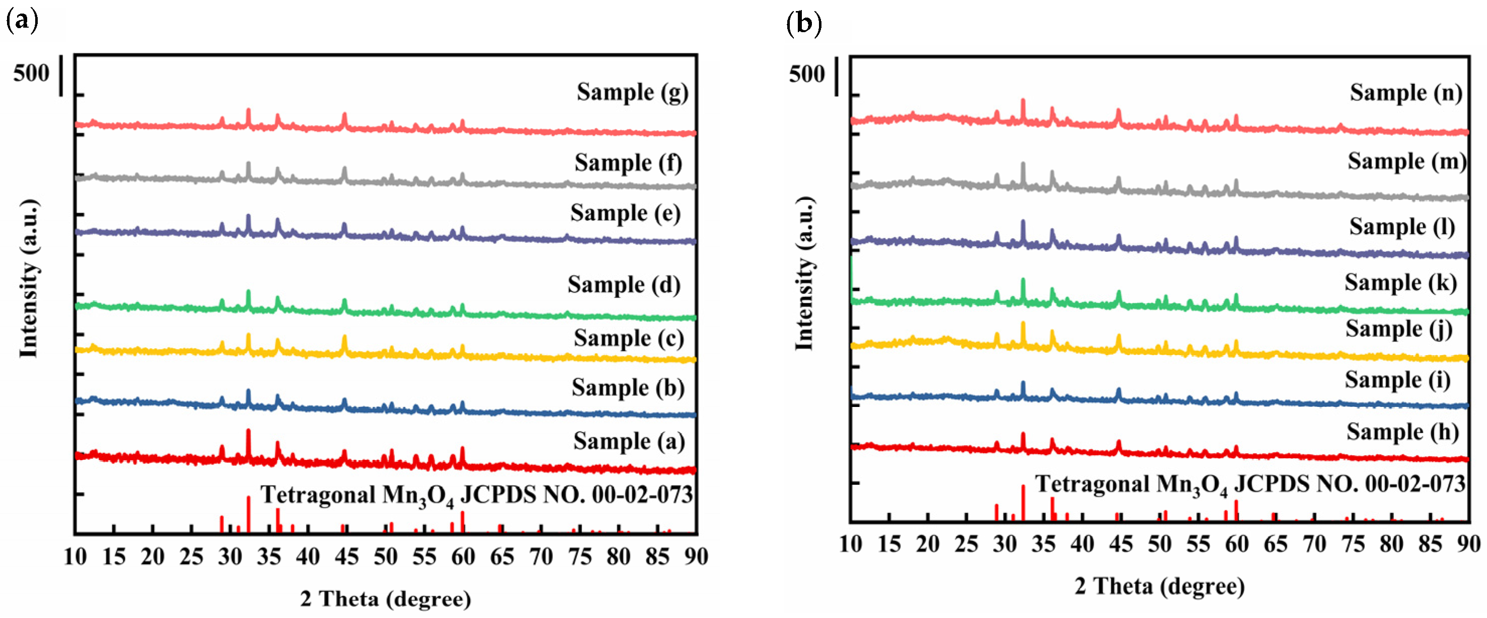 Figure 11b. The main diffraction peaks remained consistent with tetragonal Mn