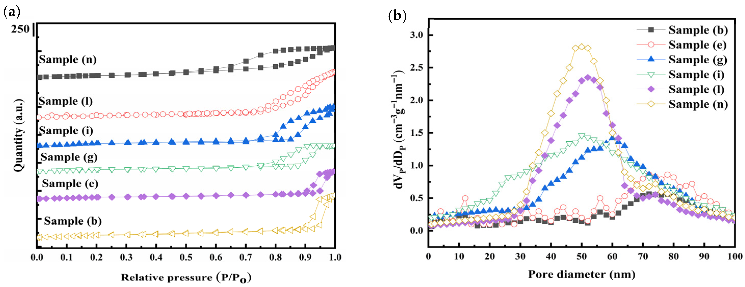 The superior performance of sample (n) can be attributed to two primary factors. First, as evidenced by the structural and textural analyses (