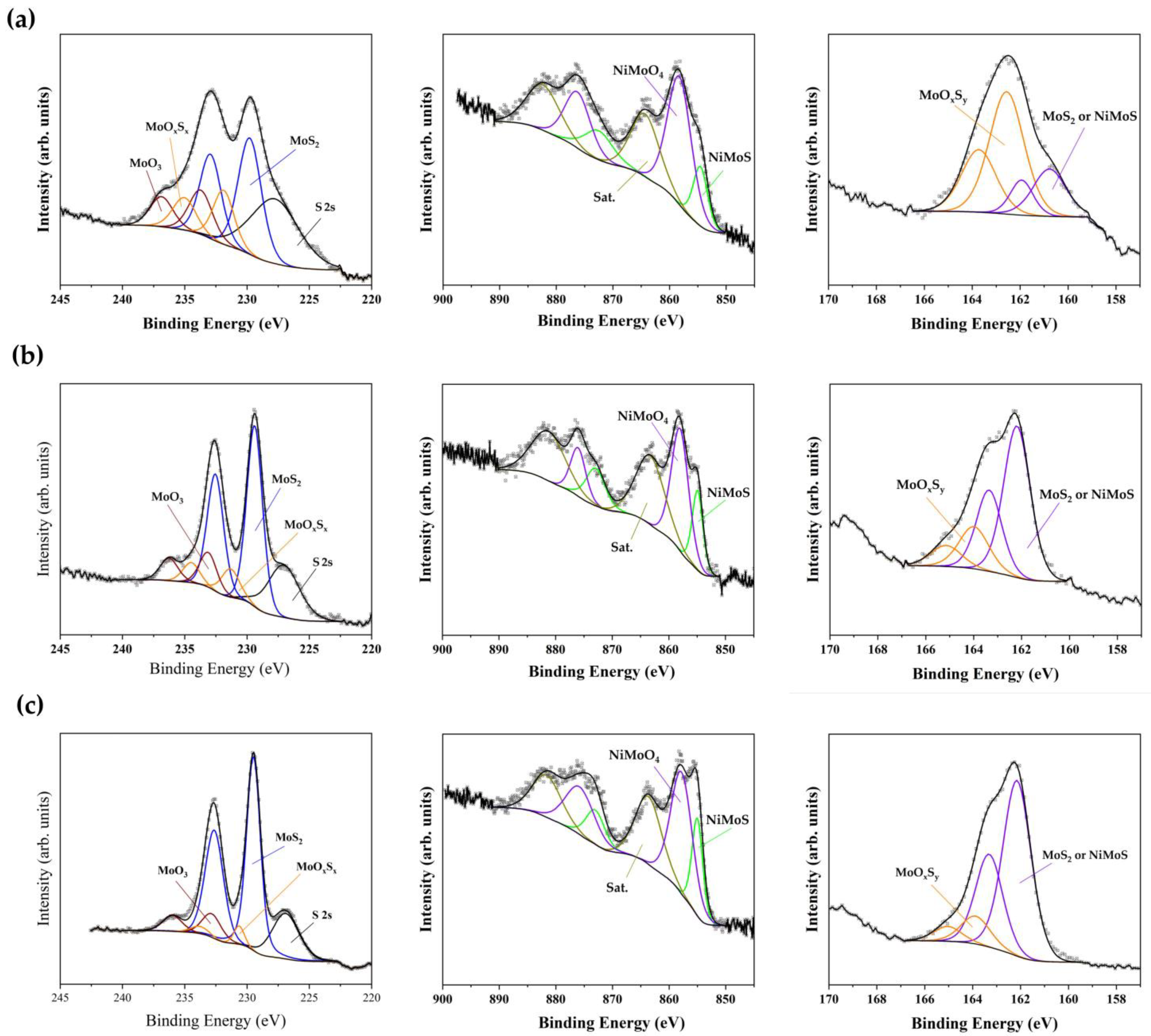 | Catalysts | Mo 3d | Ni 2p | S 2p | DSI | ||||