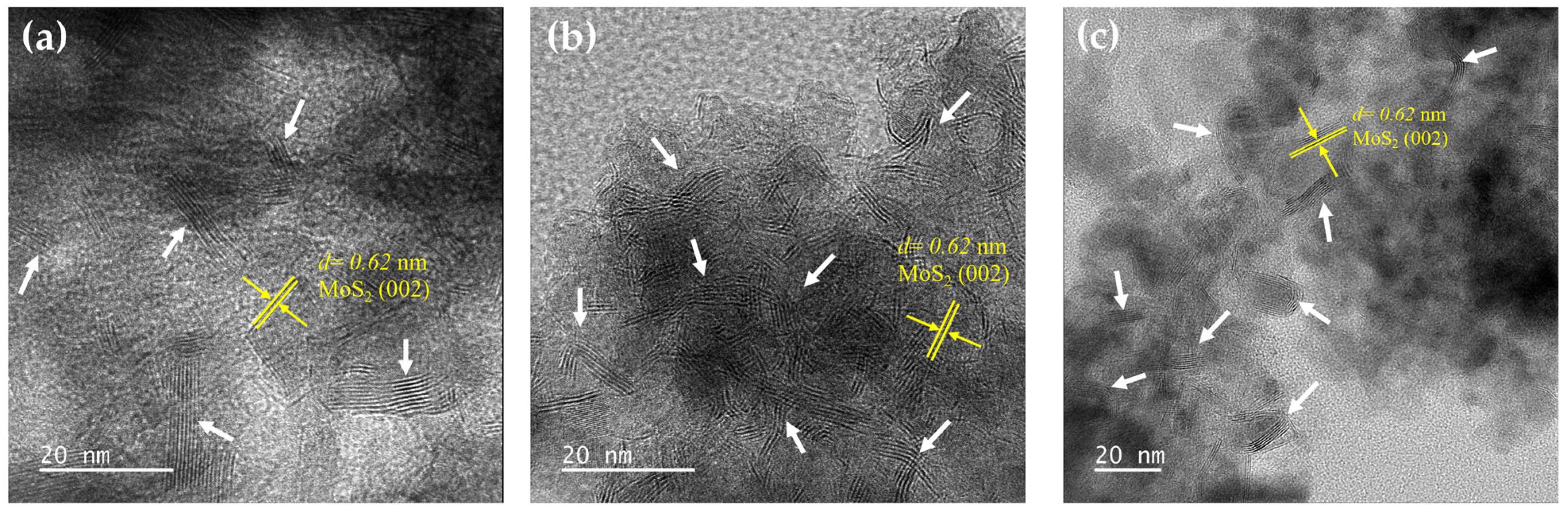 - Hensen, E.; Kooyman, P.; van der Meer, Y.; van der Kraan, A.; de Beer, V.; van Veen, J.; van Santen, R. The Relation between Morphology and Hydrotreating Activity for Supported MoS2 Particles. J. Catal. 2001, 199, 224–235. [Google Scholar] [CrossRef]