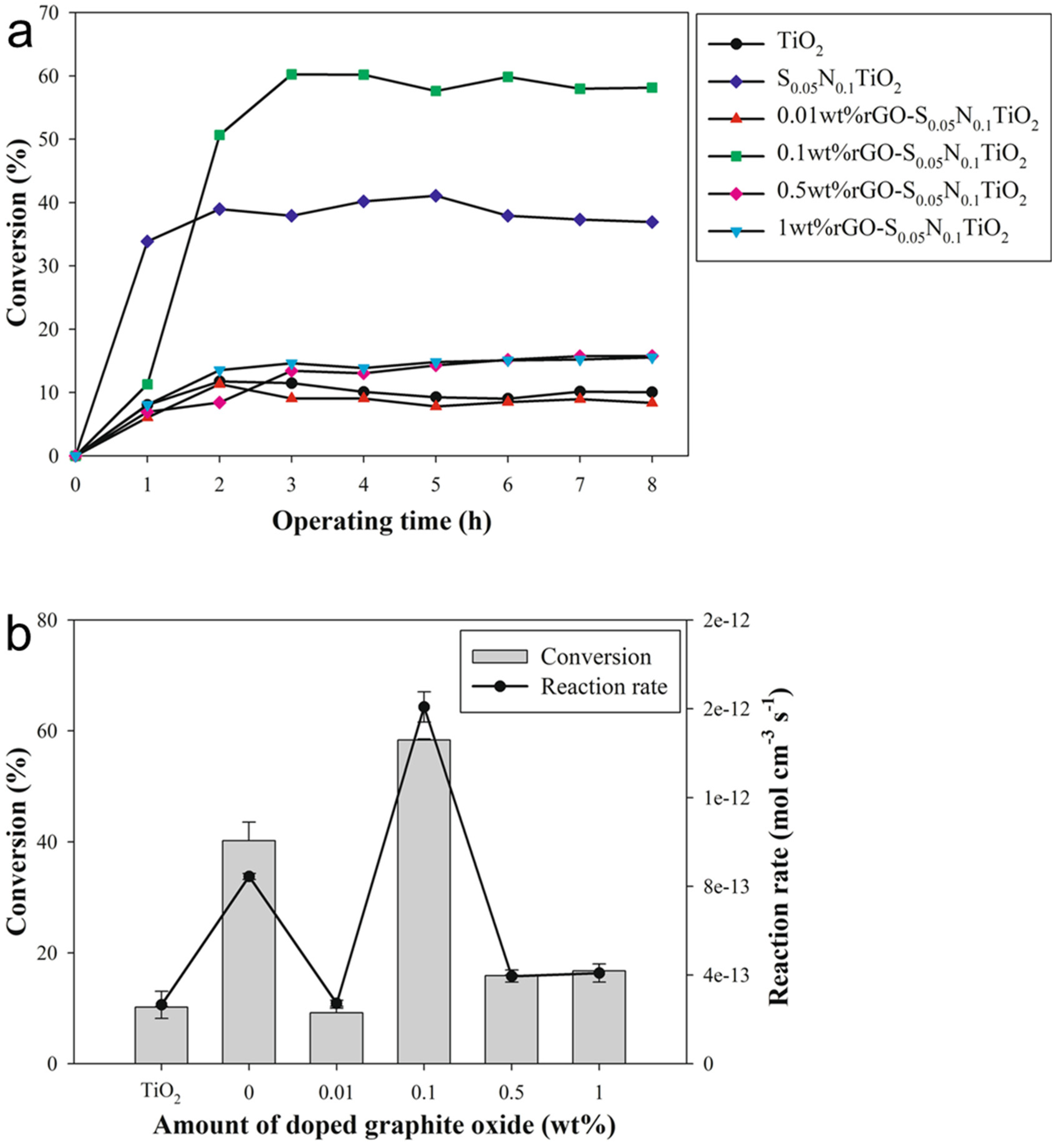 - Winayu, B.N.R.; Mao, W.H.; Chu, H. Combination of rGO/S, N/TiO2 for the enhancement of visible light-driven toluene photocatalytic degradation. Sustain. Environ. Res. 2022, 32, 34. [Google Scholar] [CrossRef]