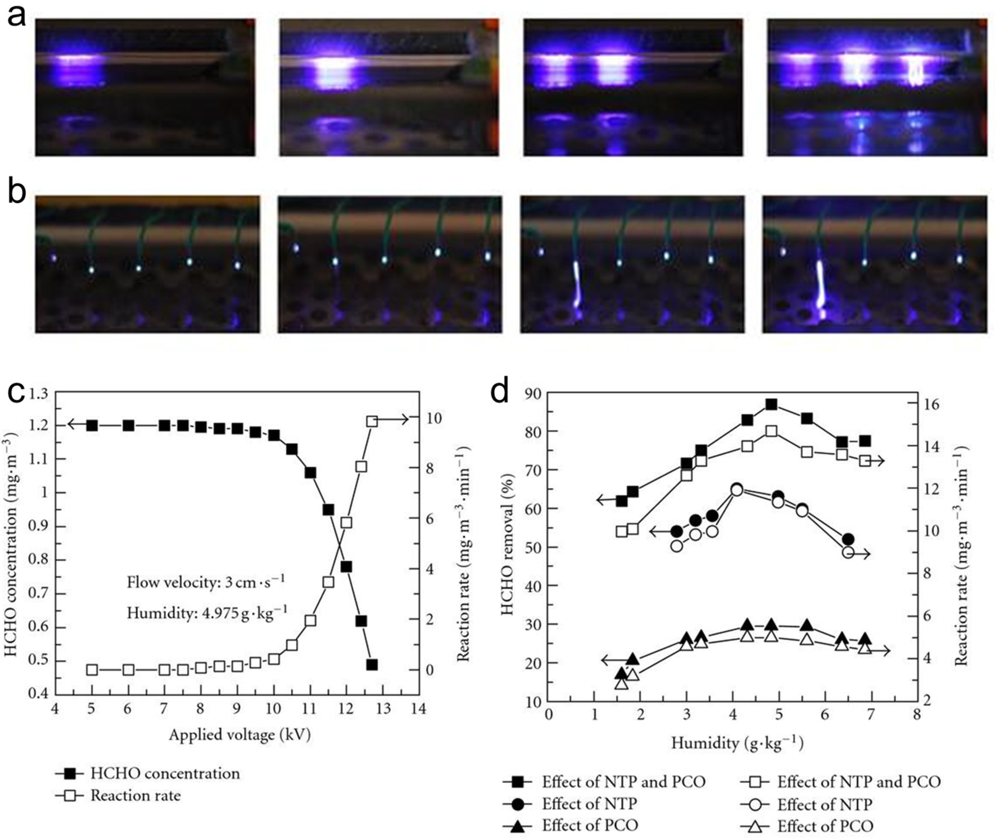 - Lu, Y.; Wang, D.; Wu, Y.; Ma, C.; Zhang, X.; Yang, C. Synergistic effect of nanophotocatalysis and nonthermal plasma on the removal of indoor HCHO. Int. J. Photoenergy 2012, 2012, 354032. [Google Scholar] [CrossRef]