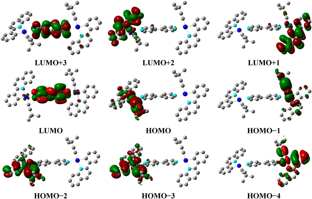 Computational Details for Theoretical Calculations. DFT and TD-DFT calculations were performed on complex 2a with Gaussian 03 revision E.01 [68]. Geometries in the S0 ground state and T1 excited state were optimized using the restricted B3LYP (S0) or unrestricted U-B3LYP (T1) Becke’s three-parameter functional combined with Lee-Yang-Parr’s correlation functional [69,70,71]. The basis set used for the platinum centers was the LanL2DZ effective core potential [72] and 6-31G(d,p) for the ligand atoms. The solvent effect of the dichloromethane in the TD-DFT calculation was taken into consideration by the polarizable continuum model (PCM) [73] using CPCM [74].