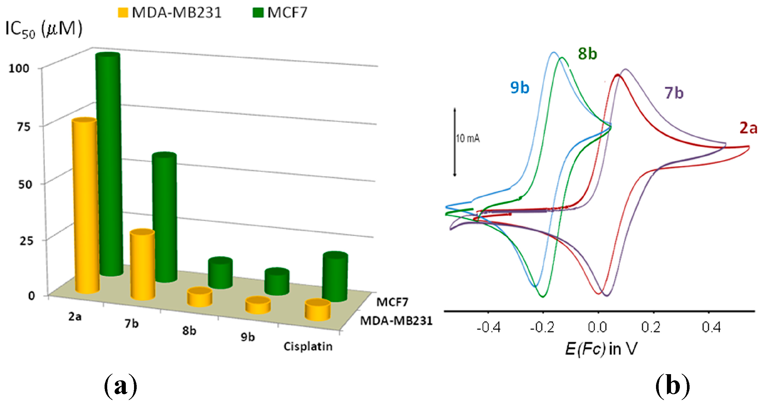 | MCF7 | MDA-MB231 | Epa | Epc | ΔE | Ipa/Ipc | ||