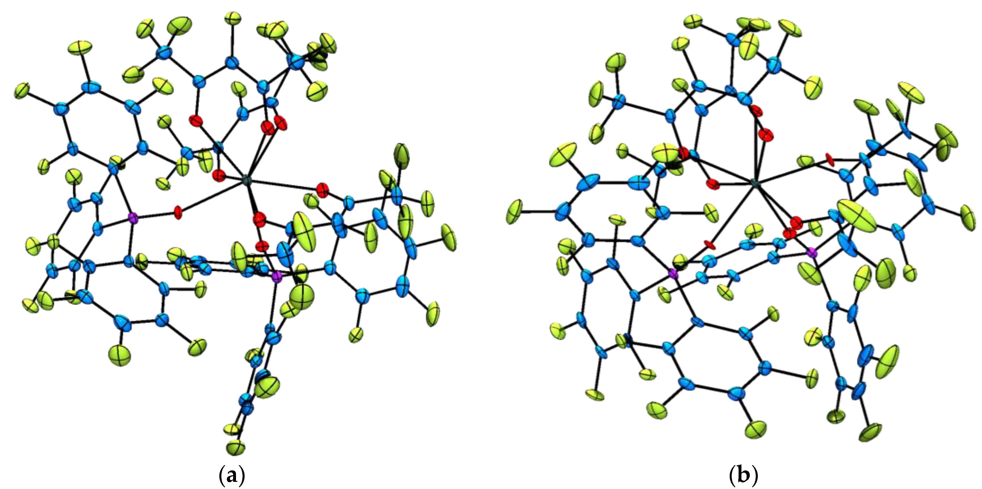 - Ye, H.-Q.; Peng, Y.; Li, Z.; Wang, C.-C.; Zheng, Y.-X.; Motevalli, M.; Wyatt, P.B.; Gillin, W.P.; Hernańdez, I. Effect of fluorination on the radiative properties of Er3+ organic complexes: An opto-structural correlation study. J. Phys. Chem. C 2013, 117, 23970–23975. [Google Scholar] [CrossRef]