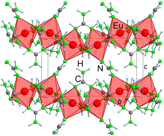 2.2. Refinement and Crystal Structure of α-Eu(CN3H4)2