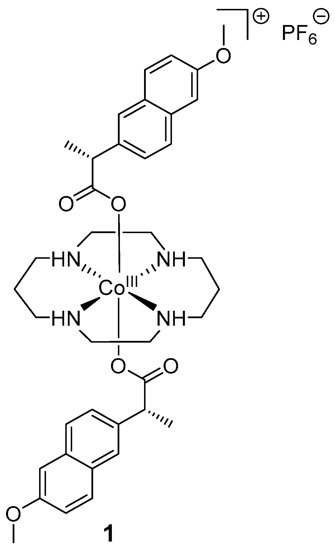 - Cressey, P.B.; Eskandari, A.; Bruno, P.M.; Lu, C.; Hemann, M.T.; Suntharalingam, K. The potent inhibitory effect of a naproxen-appended cobalt(III)–cyclam complex on cancer stem cells. ChemBioChem 2016, 17, 1713–1718. [Google Scholar] [CrossRef] [PubMed]