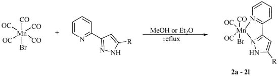 2.1. Synthesis of [(OC)3Mn(Br)(2-PyPzRH)] (2)