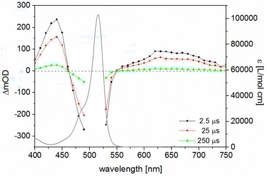 3.5. ns Time-Resolved Transient Absorption Spectroscopy