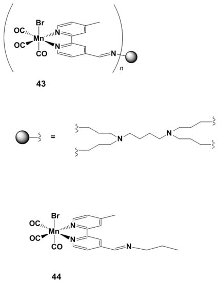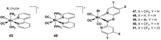 - Yempally, V.; Kyran, S.J.; Raju, R.K.; Fan, W.Y.; Brothers, E.N.; Darensbourg, D.J.; Bengali, A.A. Thermal and Photochemical Reactivity of Manganese Tricarbonyl and Tetracarbonyl Complexes with a Bulky Diazabutadiene Ligand. Inorg. Chem. 2014, 53, 4081–4088. [Google Scholar] [CrossRef] [PubMed]