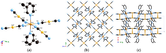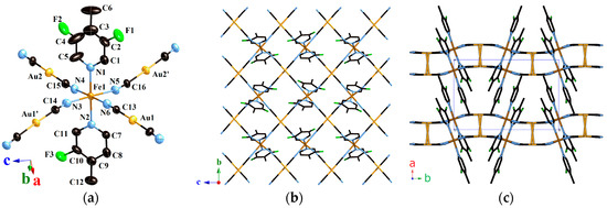- Kosone, T.; Kanadani, C.; Saito, T.; Kitazawa, T. Synthesis, crystal structures, magnetic properties and fluorescent emissions of two-dimensional bimetallic coordination frameworks FeII(3-fluoropyridine)2[AuI(CN)2]2 and MnII(3-fluoropyridine)2[AuI(CN)2]2. Polyhedron 2009, 28, 1930–1934. [Google Scholar] [CrossRef]