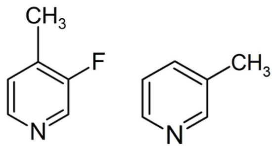 Molecular structure of the ligands of 3-Furuoro-4-methyl-py and 3-Methyl-py.