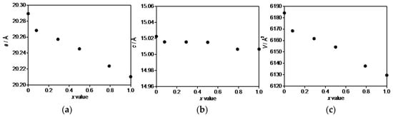 | c/Å | 15.0224(5) | 15.0156(5) | 15.0154(6) | 15.0151(8) | 15.0047(13) | 15.0066(13) |