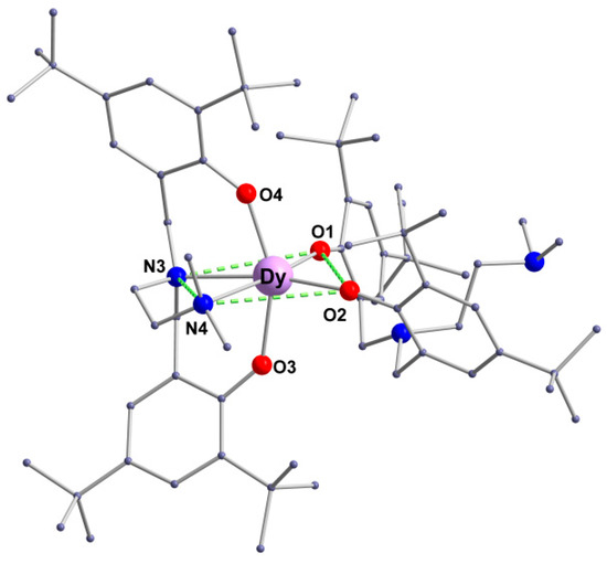 Considering the various coordination geometries and numbers of lanthanide complexes, choosing the particular coordination geometry is of vital importance in order to obtain better SMMs. For DyIII ions with the oblate-shaped electron density, a crystal field in which the ligand electron density is concentrated above and below the equatorial plane is desired to enhance the magnetic anisotropy [19]. Furthermore, this kind of crystal field could lead to a highly efficient dysprosium SIM (single-ion magnet), such as D4d [20,21,22] or D5h [23,24,25]. Moreover, the low-coordinate lanthanide complexes are superior at controlling the coordinated environment and understanding the magneto-structural relationship [26,27,28,29,30].