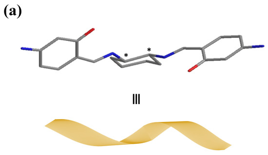 - Consiglio, G.; Oliveri, I.P.; Failla, S.; Di Bella, S. Supramolecular aggregates of defined stereochemical scaffolds: Aggregation/deaggregation in Schiff-base zinc(II) complexes derived from enantiopure trans-1,2-diaminocyclohexane. Inorg. Chem. 2016, 55, 10320–10328. [Google Scholar] [CrossRef] [PubMed]