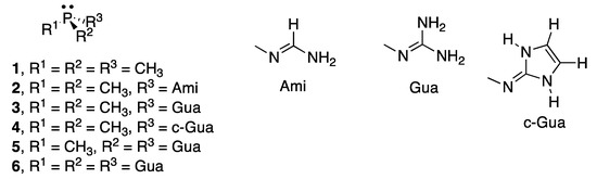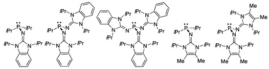 - Mehlmann, P.; Mück-Lichtenfeld, C.; Tan, T.T.Y.; Dielmann, F. Tris(imidazolin-2-ylidenamino)phosphine: A Crystalline Phosphorus(III) Superbase That Splits Carbon Dioxide. Chem. Eur. J. 2017, 23, 5929–5933. [Google Scholar] [CrossRef] [PubMed]