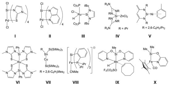 Selected metal–silicon complexes with donor–acceptor-interactions between the Si atom of a tetravalent silane and a d10 metal atom.