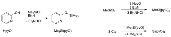 Syntheses of starting materials MeSi(pyO)3 and Si(pyO)4.