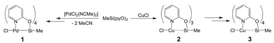 2.3. Reactions of MeSi(pyO)3 with [PdCl2(NCMe)2] and CuCl