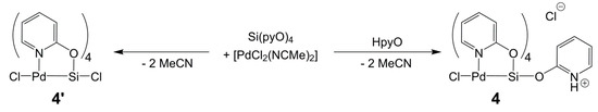 Reactions of Si(pyO)4 with [PdCl2(NCMe)2].