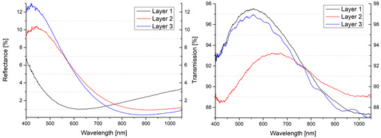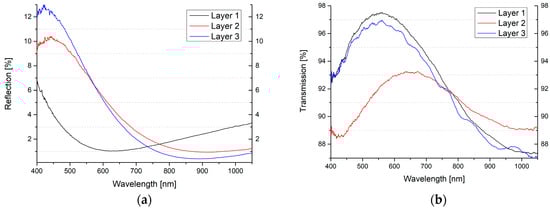 (a) Reflectance curve of layers 1–3; (b) Transmission curves of layers 1–3; Layer 1: MgAlF5; Layer2: MgAl2F8; Layer3: Mg2AlF7. Reproduced from Reference [48] with the permission of the Royal Chemical Society.