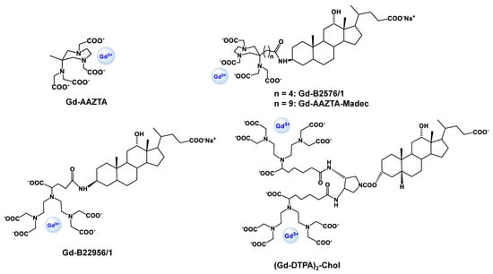 - Cavagna, F.M.; Lorusso, V.; Anelli, P.L.; Maggioni, F.; de Haën, C. Preclinical Profile and Clinical Potential of Gadocoletic Acid Trisodium Salt (B22956/1), a New Intravascular Contrast Medium for MRI. Acad. Radiol. 2002, 9, S491–S494. [Google Scholar] [CrossRef]