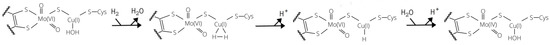 Reaction mechanism for H activation proposed by Wilcoxen and Hille on the basis of experimental results [9].