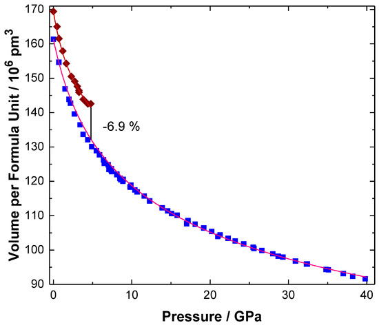 - Murnaghan, F.D. The compressibility of media under extreme pressures. Proc. Natl. Acad. Sci. USA 1944, 30, 244–247. [Google Scholar] [CrossRef]
