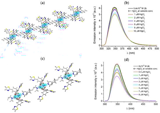 - Khatun, A.; Panda, D.K.; Sayresmith, N.; Walter, M.G.; Saha, S. Thiazolothiazole-Based Luminescent Metal–Organic Frameworks with Ligand-to-Ligand Energy Transfer and Hg2+ Sensing Capabilities. Inorg. Chem. 2019, 58, 12707–12715. [Google Scholar] [CrossRef] [PubMed]