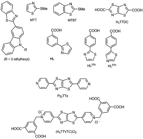 2. Thiazole-Based MOFs and CPs as Luminescent Materials