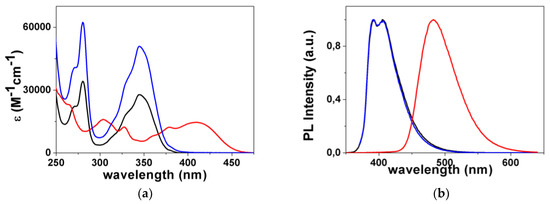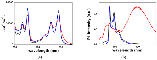 - Kollár, J.; Hrdlovič, P.; Chmela, Š. Spectral properties of bichromophoric pyrene derivatives: Monomer vs. excimer fluorescence. J. Photochem. Photobiol. Chem. 2010, 214, 33–39. [Google Scholar] [CrossRef]