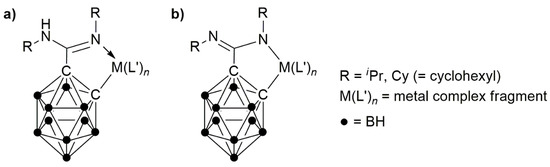 - Edelmann, F.T. Carboranylamidinates. Z. Anorg. Allg. Chem. 2013, 639, 655–667. [Google Scholar] [CrossRef]