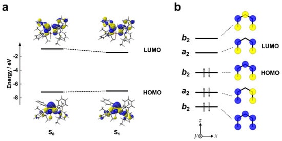 (a) Calculated energy diagrams for the optimized structures at the S0 and S1 states. Isovalue was set at 0.03. (b) Schematic representation of the orbital symmetries of the pentadienyl anion. Arrows denote electrons.