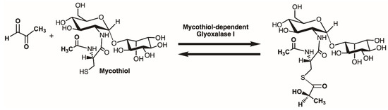 - Ozyamak, E.; Black, S.S.; Walker, C.A.; Maclean, M.J.; Bartlett, W.; Miller, S.; Booth, I.R. The critical role of S-lactoylglutathione formation during methylglyoxal detoxification in Escherichia coli. Mol. Microbiol. 2010, 78, 1577–1590. [Google Scholar] [CrossRef] [PubMed]