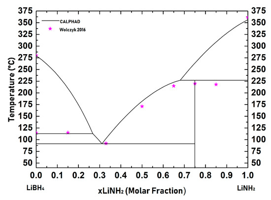 * A temperature dependency and sub-regular model were used to describe the LiBH4-NaBH4 system. The reported values have been recalculated in this review for a system described by a regular model.