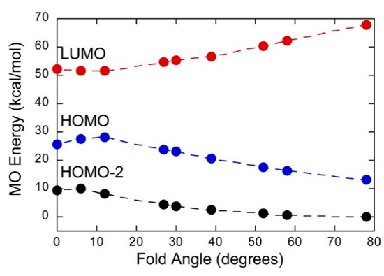 Fold angle distortions as a function of redox orbital electron occupancy in a series of Cp2MIV(bdt) complexes. (Adapted with permission from J. Am. Chem. Soc. 2018, 140, 14777–14788. Copyright (2018) American Chemical Society).