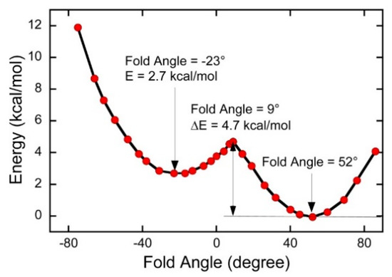 At the critical threshold defined by Equation (2), the metallodithiolene centers of Cp2M(bdt) can distort along the dithiolene fold angle coordinate to yield a double well potential energy surface (Figure 12), and the magnitude of the PJT distortion is maximized by a large F, a small Δ, and a small K0. Thus, the PJT distortion in these Cp2M(bdt) complexes effectively couples soft fold angle bending modes in the M-dithiolene chelate ring to the inherent electronic structure of the system via the d-electron count. Importantly, the mixing of low-energy charge transfer states into the ground state by the PJT effect controls the covalency of the M–S bonds.