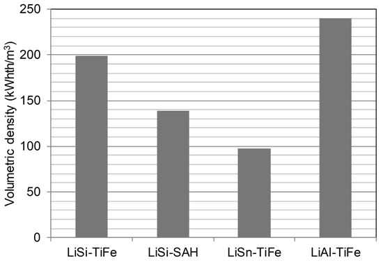 Volumetric energy density of selected Li destabilized thermal energy storage systems.