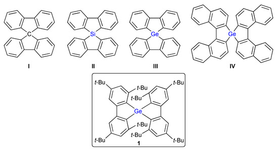 Spirobifluorene (I) and its Si- (II) and Ge-analogues (III, IV and 1).