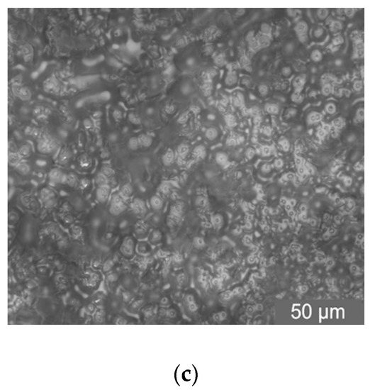 To characterise the effect of nanoparticle addition on polymer crystallisation, the crystalline morphology and size of pure LDPE, nano-MMT/LDPE, and nano-ZnO/LDPE samples were observed via PLM. The mass fraction of nanoparticles in the nanocomposites was 3%. The experimental results are shown in Figure 3.