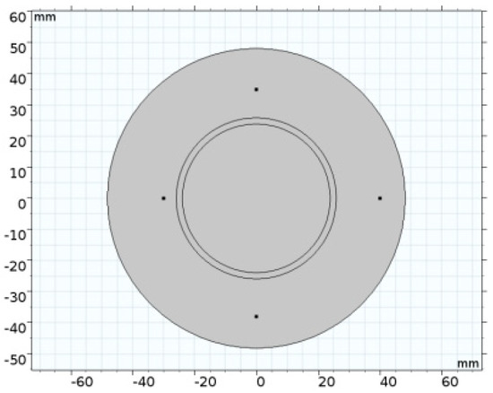 To visually detect the breakdown properties of the simulation cable insulation, cable internal electric field distribution and dielectric loss cloud images were built. In addition, four points in the three simulation cables were randomly selected. The electric field and loss values of these points were determined. According to the detection data, the breakdown strengths of the three cable insulating layers could be distinguished. The four points in the cable model are shown in Figure 4.