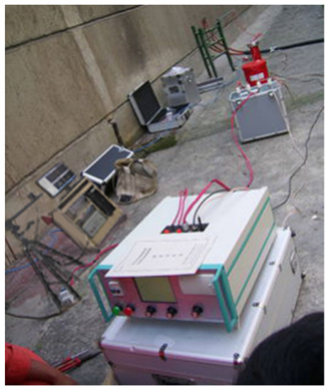 After the series resonant equipment was installed, the tested cables were electrified. In the cable infrared detection experiment, the hardware devices include two infrared cameras, a tripod, and a computer, as depicted in Figure 9.