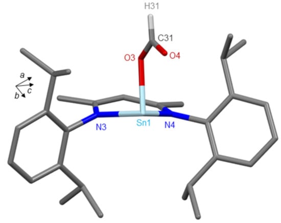 | [HC{(Me)CN(2,6-i-Pr2C6H3)}2]SnOC(O)NH(2,6-i-Pr2C6H3) (7) | −398.0 b | 161.59 b | 1624, 1554, 1526, and 1517 | [] |