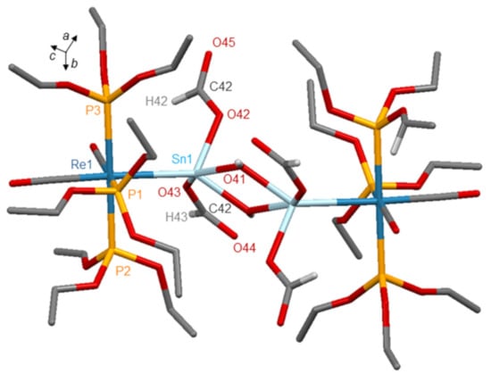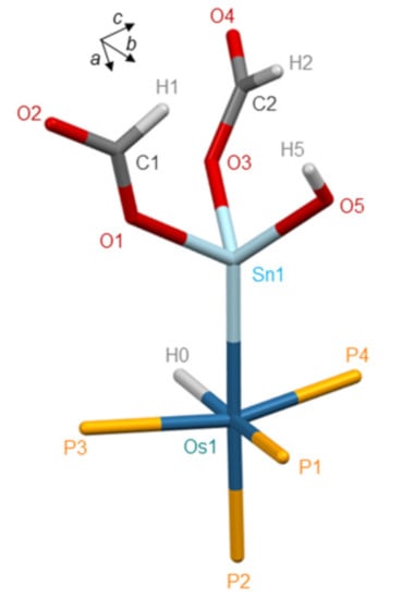 To our knowledge, pioneering work on formato tin complexes dates back to 1927. Elöd and Kolbach described a general method to prepare a series of Sn(II) compounds of formula M2Sn(O2CH)4·5H2O (M = Na, K, and NH4) by dissolving tin(II) chloride into solutions of alkali metal or ammonium formate, in formic acid (35% w/w) []. In 1964, Donaldson and Knifton revisited the synthetic protocol by reporting the preparation and analysis of alkali metal (K, Rb, and Cs) and ammonium derivatives of the triformatostannate(II) anion [Sn(O2CH)3]− []. In 1969, Jelen and Lindqvist solved the crystal structure of potassium triformatostannate(II), KSn(HCO2)3 in which the tin atom is coordinated pyramidally by three oxygen atoms of three formate groups (CSD refcode: KTFORM, 1200243) []. Thereafter in 1974, Harrison and Thornton published an X-ray diffraction study devoted to the structure determination of Sn(O2CH)2 arranged in infinite two-dimensional sheets in which tin(II) atomes are bridged by formate groups (CSD refcode: SNFORM, 1260779) [].