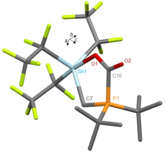 Since the 1990s, the chemical transformation of CO2 and its coordination on metal centers have been regularly reviewed and updated [,,,,,,,,,,]. During the last decade, the reactivity of main group elements, and in particular metals and metalloids from group 14 (Si, Ge, Sn, Pb), toward small molecules also aroused a growing interest [,]. In this context and based on our previous work in this field, we have recently reviewed molecular organotin compounds bearing hemi-carbonate and carbonate ligands and which result from the reactivity of tin precursors towards carbon dioxide []. In this second part, we continue to explore from a structural point of view the molecular derivatives of tin which result from the insertion of carbon dioxide into the Sn–X bonds (X = N, H, P). Thus, the formation and structures of carbamato, formato and phosphinoformato tin derivatives are successively described and discussed. The last chapter is devoted to metallocarboxylato tin complexes exhibiting a bridging CO2 ligand. Although these latter compounds are not derived from the direct reactivity of tin precursors with carbon dioxide, we found appropriate to include them in this review. Regarding the general method used to carry out this inventory, the compounds described below were identified from the data available on the online portal of the Cambridge Structural Database (CSD) web interface (2017) []. In addition to the structural description, comparison tables including selections of structural and spectroscopic data are also displayed at the end of each section (Table 1, Table 2, Table 3, Table 4, Table 5, Table 6, Table 7 and Table 8).