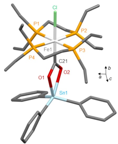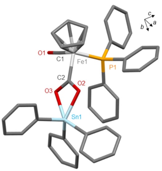 - Pinkes, J.R.; Cutler, A.R. Iron-tin carbon dioxide complexes (η5-C5Me5)(CO)2Fe–CO2SnR3 (R = Me, Ph): Observations pertaining to unsymmetrical metallocarboxylates and carboxylate–carbonyl 13C-label exchange. Inorg. Chem. 1994, 33, 759–764. [Google Scholar] [CrossRef]
